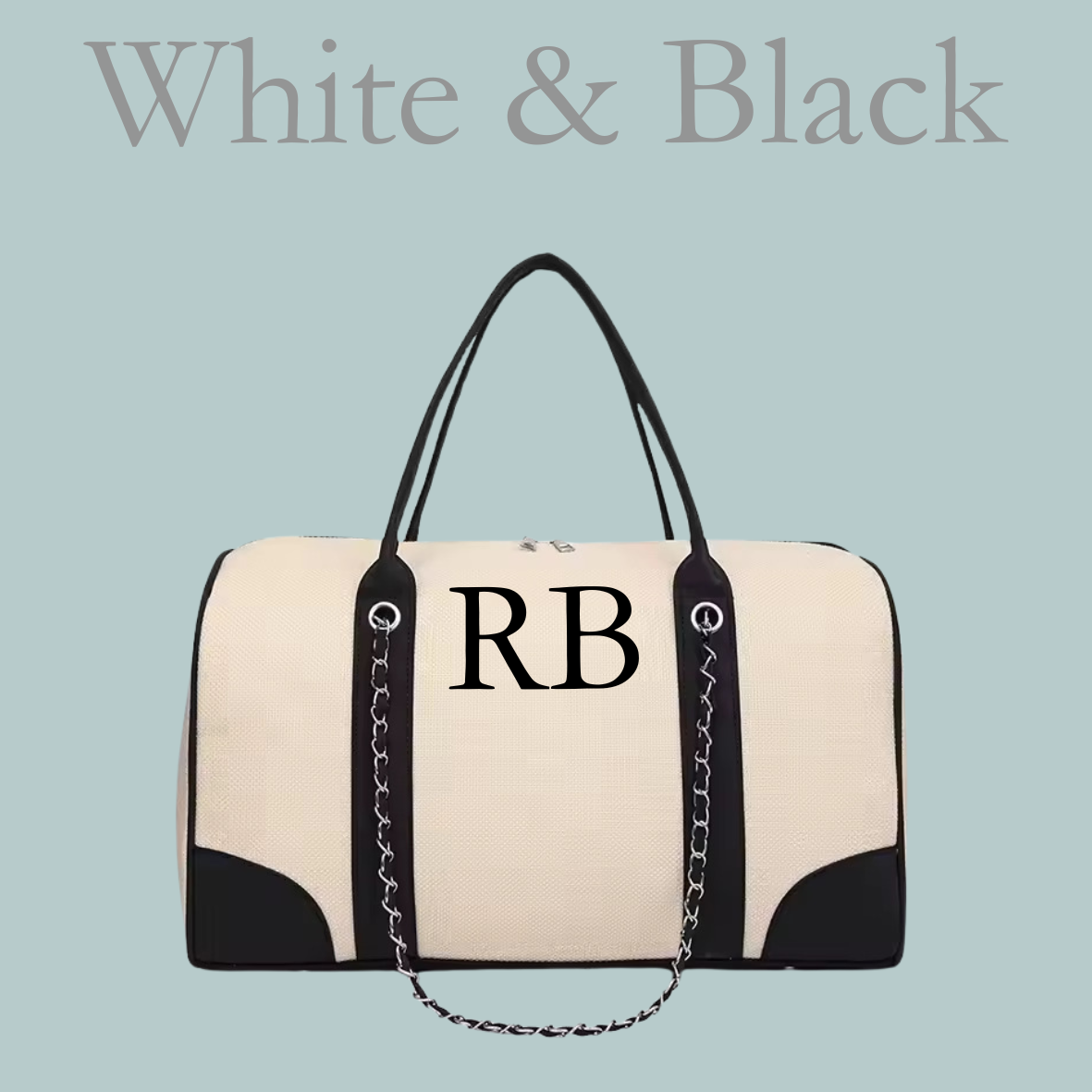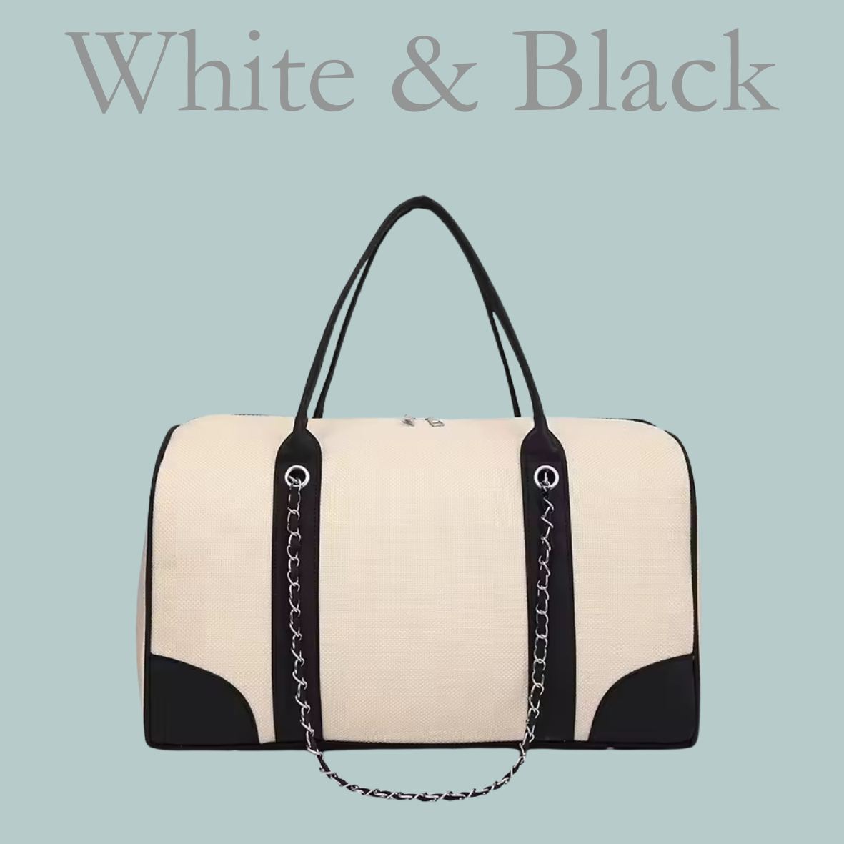Canvas Barrel Bag - White & Black